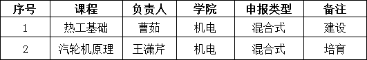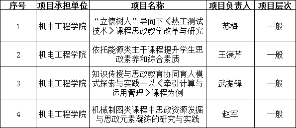 机电工程学院2020年校级“金课”建设(培育)项目统计表