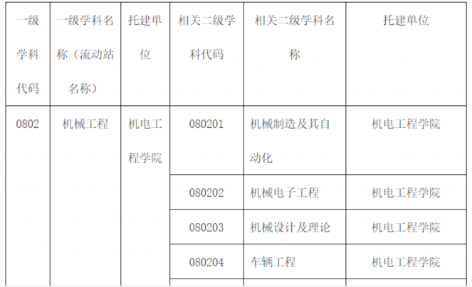 机械工程博士后科研流动站一览表