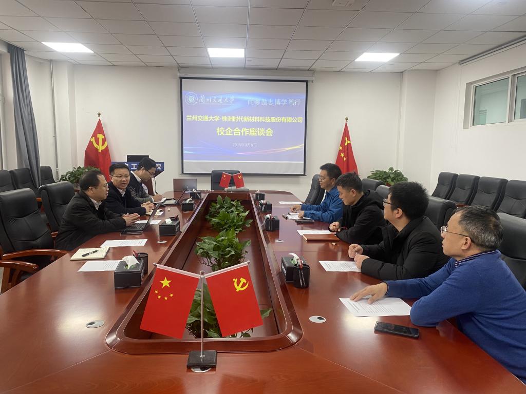 3月7日上午,株洲时代新材料科技股份有限公司工业与工程事业部副总经理桂长忍、副总工程师孔令俊等一行4人来我校进行校企合作交流,会议由李宗刚院长主持。
