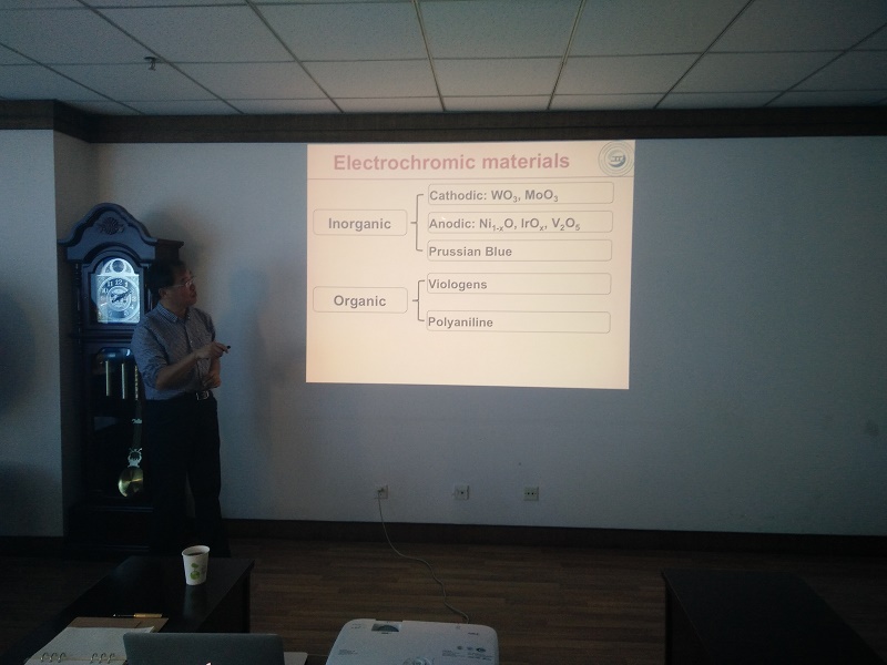 刁训刚教授在报告中介绍了电致变色材料、器件及其智能节能窗在国内外发展的最新情况;对电致变色智能窗的结构、节能原理、制备方法、特性与性能等诸多方面做了详尽的介绍;对电致变色技术在产学研和工业化过程中存在的问题提出了一些独到的见解和解决方案;同时,结合我国高铁领域快速发展的现状和需求并结合我校车辆工程研究的背景,提出把电致变色技术应用于高铁车辆以满足提高客车车辆节能效果和舒适度要求的新的科研思路和研究方向。