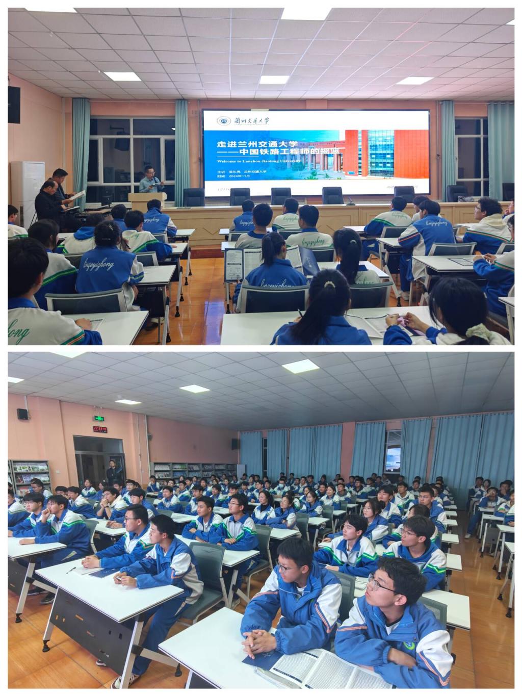 交流互动环节,同学们热情高涨,纷纷踊跃提问,现场气氛融洽,学院学生工作办公室主任张晓丽老师针对志愿报考、专业设置、就业去向、校园生活等问题做了细致解答,助力同学们为未来的高考志愿填报和职业生涯规划做好充分准备,鼓励学生脚踏实地、砥砺奋进,与时代同向同行,同学们也在轻松活泼的宣讲氛围中更加明确了自己未来的奋斗目标。招生宣传工作组还与所在中学各年级负责人进行了座谈,介绍了兰州交通大学的办学历史与特色、优势学科与专业,以及近年来学校在人才培养方面取得的卓越成就。