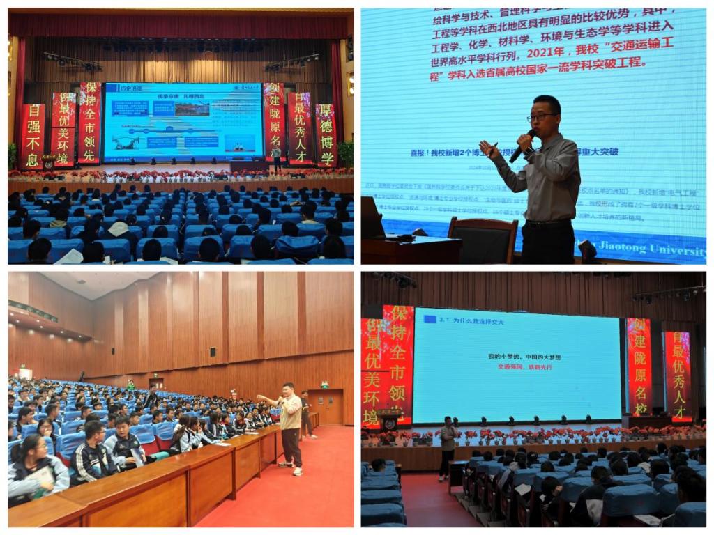 招生宣传工作组主动对接当地教育局、联系中学等部门,积极开展宣讲会与座谈走访工作,就我校基本情况、专业设置、生源选拔及就业情况等方面进行了解读宣讲。在宣讲过程中,学院辅导员吴东亮围绕兰州交通大学的历史使命与发展蓝图、人才培养与办学特色、专业学习与校园环境、就业情况等做了详细介绍,并就新高考模式下,学生的选科要求、志愿填报等做了说明,鼓励广大学子刻苦学习,积极报考兰州交通大学。学院优秀学生代表国家奖学金获得者胡瀚文结合自身学习和成长历程,从学习经验、实践经历、校园经历和科研经历等方面向同学们分享了丰富多彩的大学生活,生动地介绍了兰州交通大学的人才培养方案、专业特色优势以及丰富多彩的校园文化活动等,让在场的学生对大学生活有了更直观的了解,唤醒了同学们对于大学生活的憧憬与渴望。