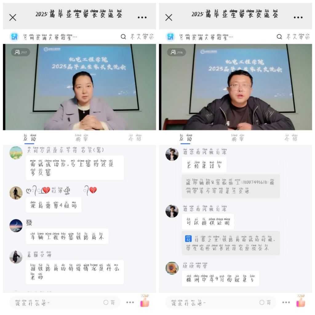 为进一步推动2025届毕业生就业工作,加强家校合作,深化就业指导服务,共同帮助毕业生科学规划未来发展,助力学院2025届毕业生实现高质量充分就业,11月6日晚上8:00,学院通过小鹅通平台召开了2025届毕业生家长线上交流会。学院党委书记张慧,党委副书记、副院长朱俊敏,辅导员李亚娜,全体毕业生及家长参加了交流会,会议由学生工作办公室主任张晓丽主持。