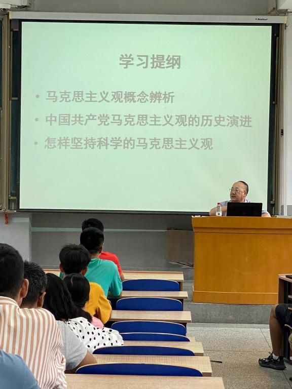 首先,曹老师通过回顾历史和结合现实问题,引出什么是马克思主义观?有什么价值?接着,曹老师从三个方面对主题进行了阐述:马克思主义观的概念辨析、中国共产党马克思主义观的历史演进、怎样坚持科学的马克思主义观。曹老师用深入浅出、通俗易懂的语言向同学们讲述了马克思主义观,用“四个哪些”强调必须用科学的态度对待马克思主义。最后,曹老师围绕“实践哲学”、“大众哲学”、“辩证哲学”、“发展哲学”、“价值哲学”等五个方面指出习近平的马克思主义观集中体现的是治国理政的马克思主义哲学思想。
