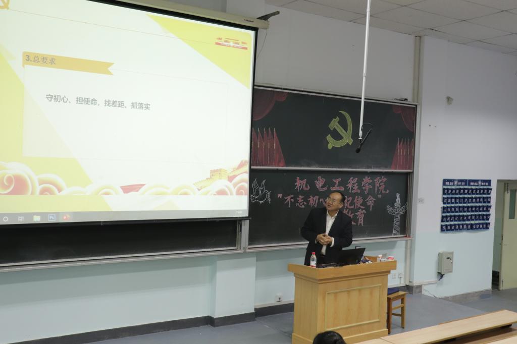 为了贯彻落实甘肃省委《关于开展第二批“不忘初心,牢记使命”主题教育的实施意见》,根据《中共兰州交通大学委员会“不忘初心,牢记使命”主题教育实施方案》相关要求,结合学院工作实际,9月19日下午,机电工程学院召开“不忘初心,牢记使命”主题教育动员大会暨集中学习,会议由学院党委书记苏程主持,学院全体教工党员、全体党支部书记参加了此次会议。