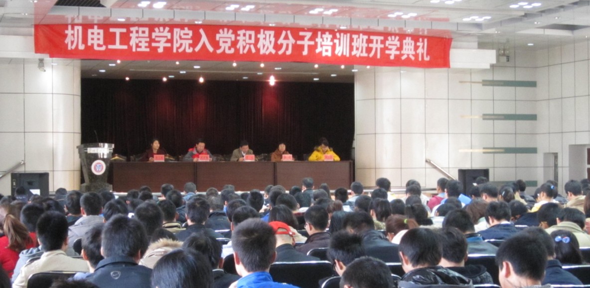 2012年11月10日,兰州交通大学第212期、机电工程学院第18期入党积极分子党课培训班举行了开班仪式,此次培训班旨在加深学员对党的知识的认识,端正入党动机,坚定入党决心,从思想和行动两个方面要个要求自己,争取早日加入党组织。