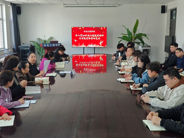 3月21日上午,机电工程学院党委召开深入贯彻中央八项规定精神学习教育动员会议,认真落实党中央、省委部署和学校党委要求,对学院开展深入贯彻中央八项规定精神学习教育进行动员部署。会议由党委书记张慧主持。学院领导班子成员、学院各党支部书记参加会议。