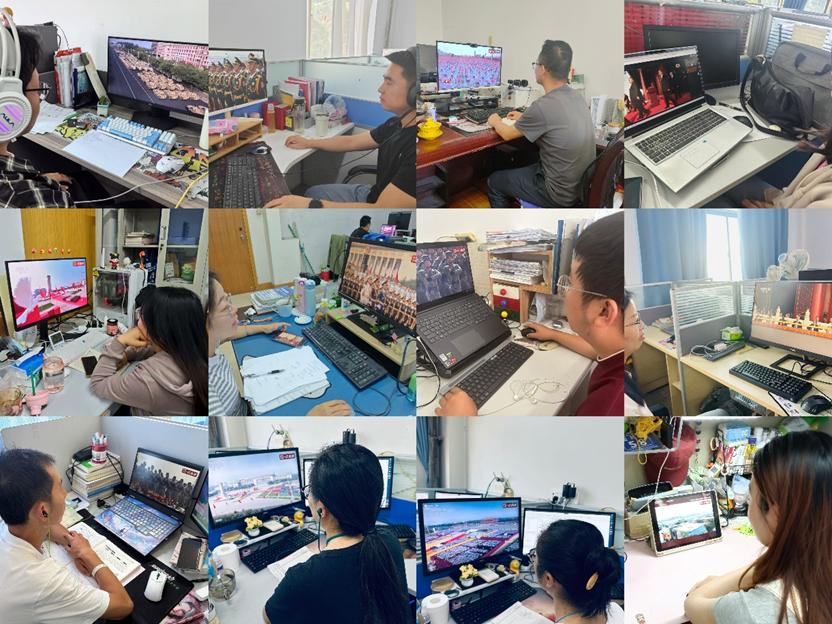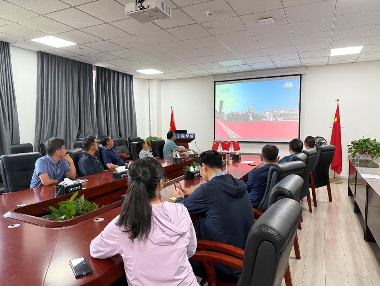 在学校的号召下,学院党委理论学习中心组成员在707会议室集中观看阅兵式直播,学院各党支部成员组织师生党员收听收看直播。