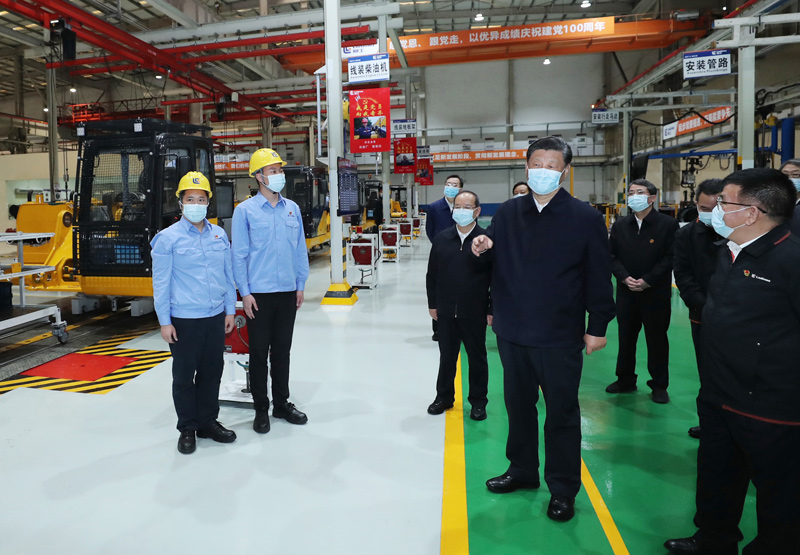 当天下午,习近平来到柳州市考察调研。在广西柳工集团有限公司,习近平先后走进公司展厅、研发实验中心、挖掘机装配厂等,听取企业发展情况介绍,察看主要产品展示,同企业职工和技术研发人员亲切交谈。习近平强调,制造业高质量发展是我国经济高质量发展的重中之重,建设社会主义现代化强国、发展壮大实体经济,都离不开制造业,要在推动产业优化升级上继续下功夫。只有创新才能自强、才能争先,要坚定不移走自主创新道路,把创新发展主动权牢牢掌握在自己手中。要坚持党对国有企业的全面领导,坚持加强党的领导和完善公司治理相统一,在深化企业改革中搞好党的建设,充分发挥党组织在企业改革发展中的领导核心作用。