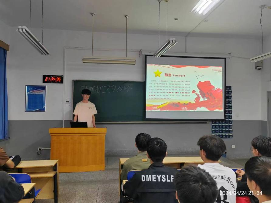 为提高国旗护卫队团员青年的思想理论水平和政治素质,引导团员青年学党史、强信念、跟党走,当好党的忠实助手和可靠后备军,4月24日,兰州交通大学国旗护卫队团支部在五教109教室召开了“弘扬红船精神 争做新时代垦荒人”主题宣讲会。