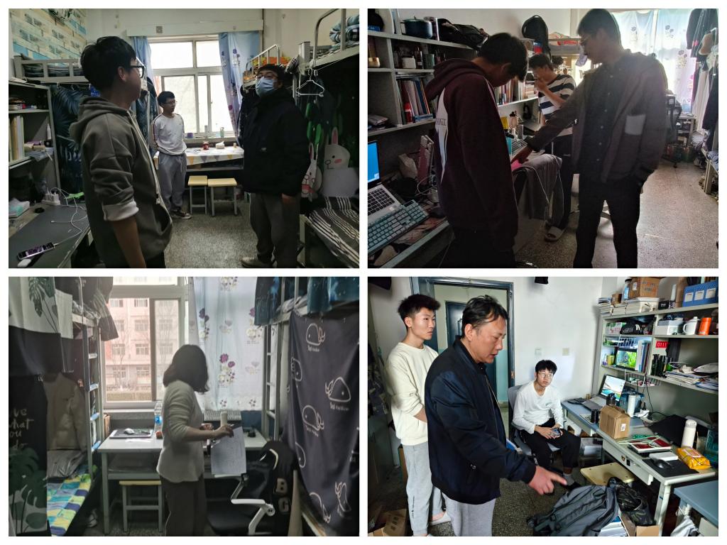 学院党委副书记、副院长荀新文一行深入学生宿舍,对宿舍安全、纪律、卫生和文化等方面进行了检查。排查了宿舍火灾安全隐患,清查了管制物品、违规电器等违禁物品,从学生宿舍规范用电、消防安全等方面进行了教育;核实排查了学生私自在外租房和夜不归宿情况,通过宣传校纪校规对学生进行反复教育引导;督查了宿舍卫生状况,叮嘱同学们要养成良好的个人卫生习惯和健康的生活方式,规范个人言行举止,构建和谐友爱的宿舍环境氛围;同时,从防帮信防电信诈骗、人身财产、禁毒和卫生健康安全等方面进行了教育,不断筑牢学生安全防范意识。