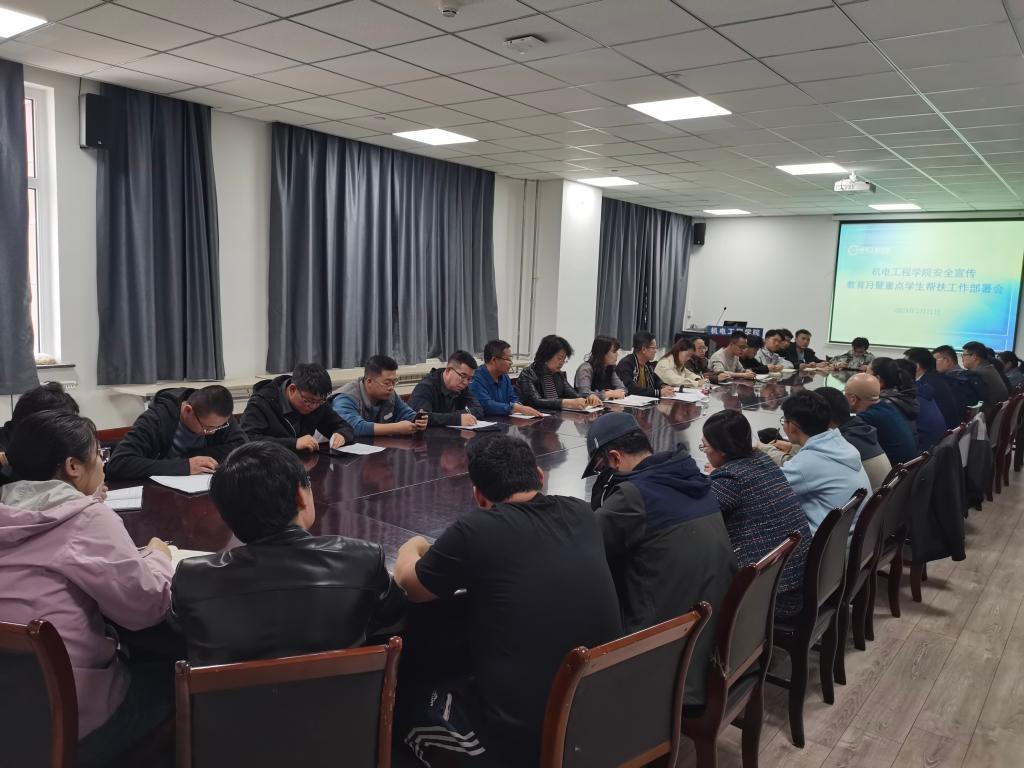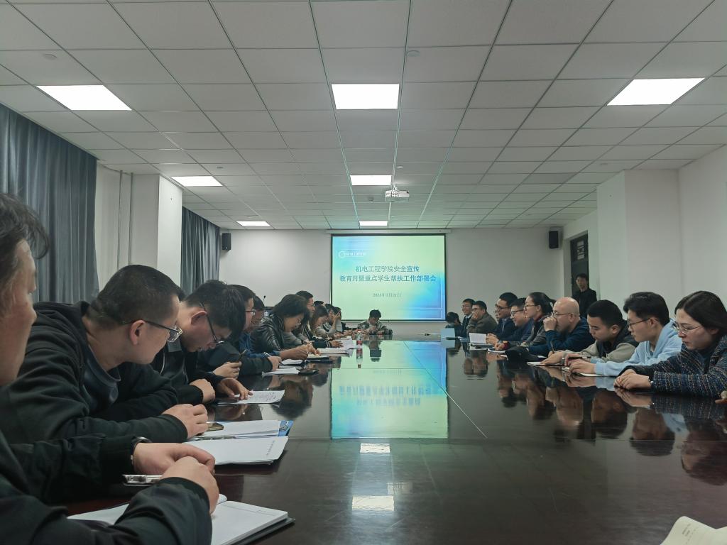 3月21日下午,机电工程学院在笃行楼B座607会议室召开了2024年校园安全宣传教育月暨重点学生群体帮扶工作部署会,学院党委副书记、副院长荀新文,学生工作办公室主任张晓丽,全体辅导员和班主任参加了会议。
