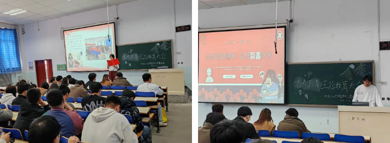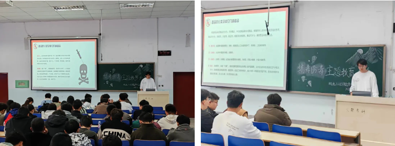毒品作为世界三大公害之一,一直是世界性的难题。宣讲会上,青年志愿者代表刘志澎从“当前毒品形式”“什么是毒品”“什么是吸毒”“毒品的危害”以及“如何预防毒品”五个方面向同学们细致讲解了毒品的相关知识,同时结合典型案例,分析当前部分群体涉毒违法犯罪的现状和原因,从树立正确的三观、谨慎交友、洁身自好、端正心态、不进出复杂的娱乐场所、不结交社会关系复杂的人员等方面向同学们讲解识毒、防毒、拒毒的技巧,呼吁同学们要坚决做到不吸毒、不贩毒,做一名遵纪守法的好公民。同学们纷纷表示要积极向家人及同学朋友宣传毒品的危害,坚决抵制毒品,珍爱生命健康。