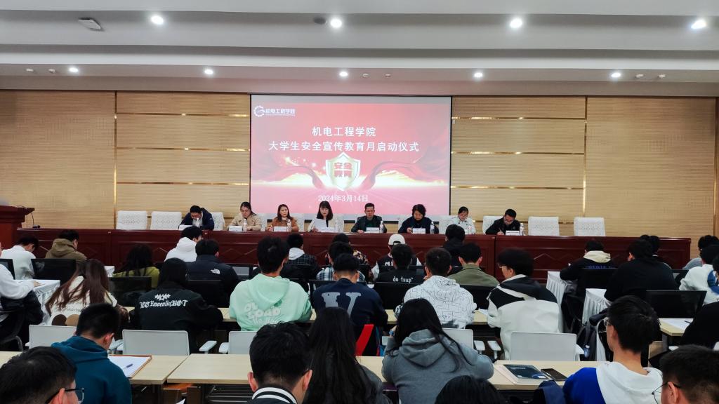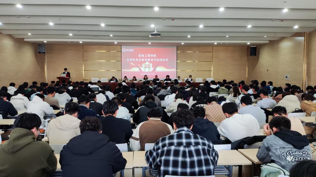 为了进一步做好学生安全教育管理工作,提升安全素养,强化安全意识,有效防范安全事故,保障学生身心健康,营造良好的学习生活氛围,3月14日下午,机电工程学院在笃行楼五楼中翼报告厅举行了大学生安全宣传教育月启动仪式。学院党委副书记、副院长荀新文,各年级辅导员和学生干部200余人参加了仪式。仪式由学生工作办公室主任张晓丽主持。