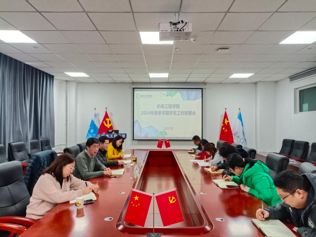 2月27日上午10:30,机电工程学院在笃行楼B座707室召开了2024年春季学期学生工作部署会。学院党委书记张红兵,党委副书记、副院长荀新文,学生工作办公室主任张晓丽、团委书记胡瑶、全体辅导员参加了会议。