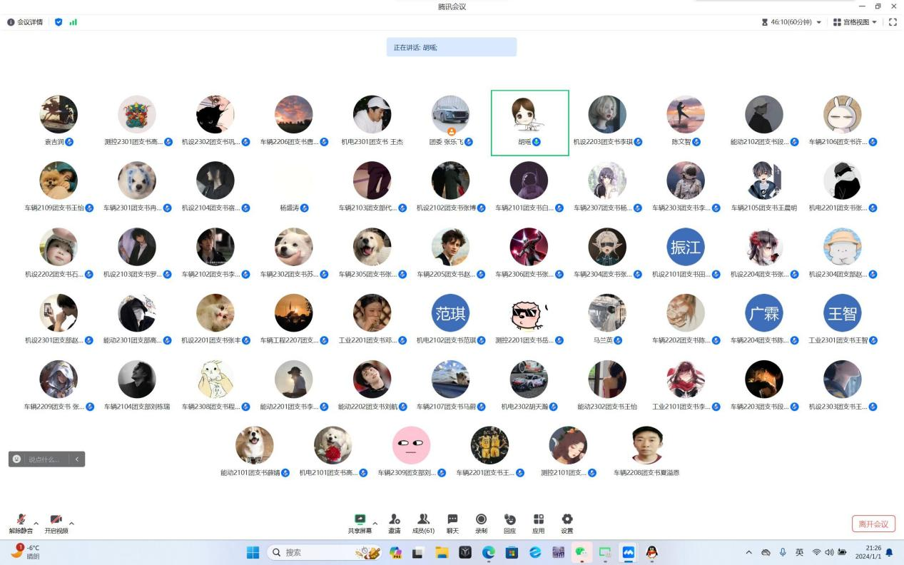 为深入学习贯彻习近平新时代中国特色社会主义思想,全面贯彻落实党的二十大精神和团的十九大精神,坚持“受教育、长才干、作贡献”的宗旨,动员和引导青年学子返回家乡参与实践,用实际行动服务家乡、服务人民,在中国式现代化中贡献青春力量,2024年1月1日,机电工程学院团委在线上召开了2024年寒假“返家乡”社会实践动员会。2021级、2022级、2023级全体团支书参加了此次会议,会议由学院团委书记胡瑶主持。