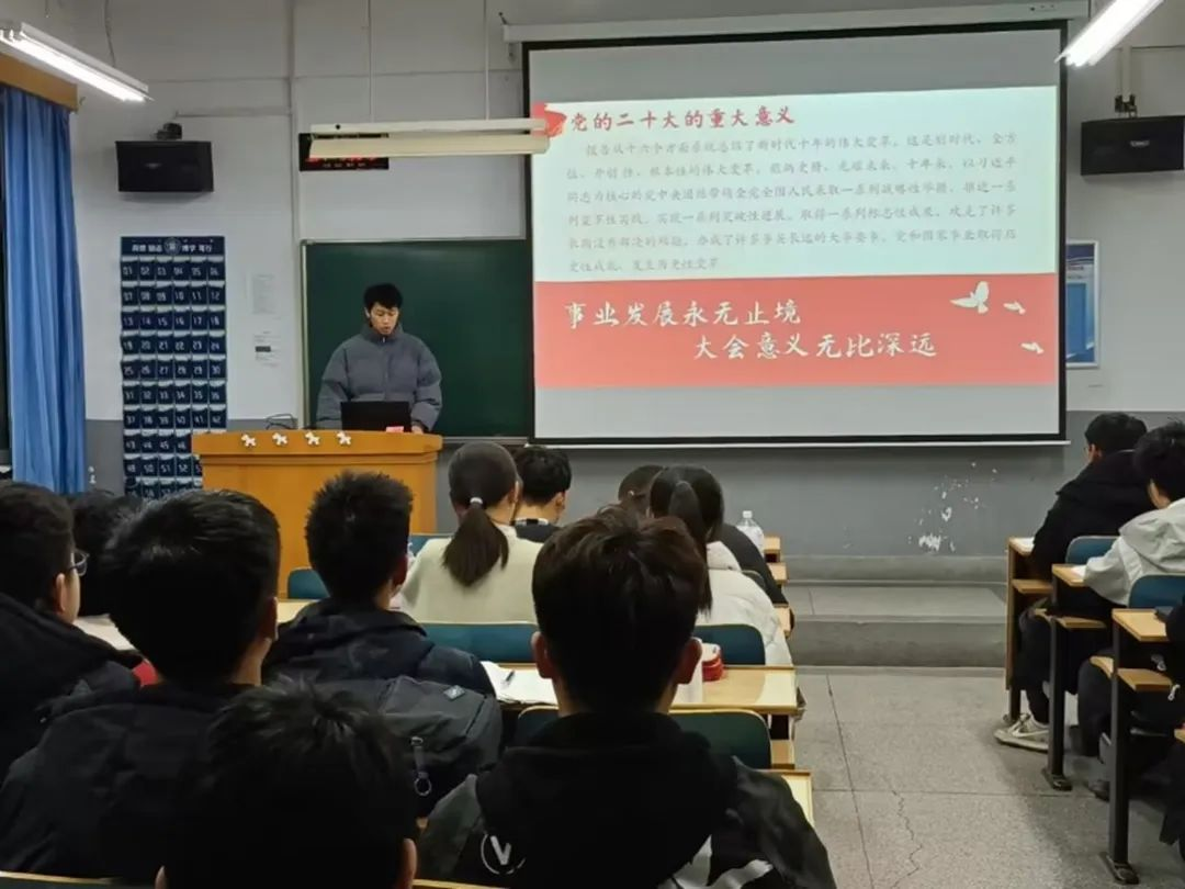 “青马工程”培训班六个小组深入学院2023级团支部开展宣讲。“青马”学员通过学习平台的“学习篇目”和《习近平的七年知青岁月》、《习近平与大学生朋友们》等生动教材,结合党的二十大精神、团的十九大精神、习近平总书记重要讲话精神以及自己的学习生活、社会实践,用饱满的热情、灵动的语言、鲜活的事例传播“青马”之声、汇聚青春力量,让党的创新理论以更生动、更走心的形式传递给更多青年,切实增进广大团员和青年的政治认同、思想认同、理论认同和情感认同。