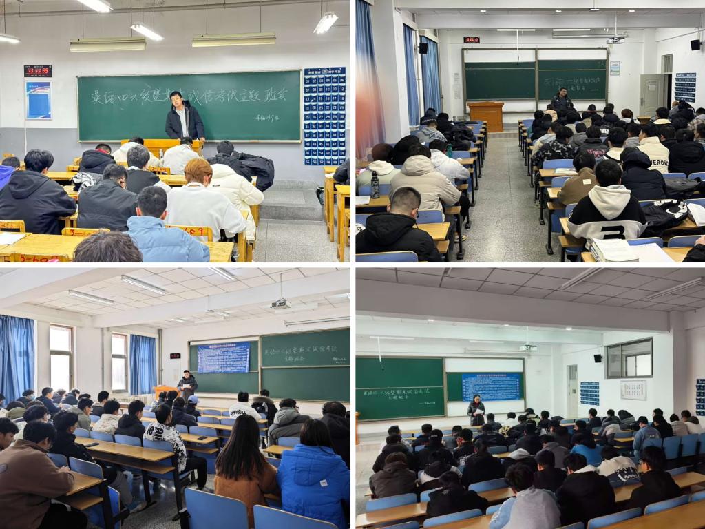 会上,班主任就近期的班风学风情况做了总结,督促学生制定计划、扎实复习,规律作息、查漏补缺,帮助学生减缓考试焦虑;提醒同学们考前要提前检查耳机、证件、查看考场等细节事宜,说明了证件丢失补办证明的流程和途径,引导学生做好考前准备;领学了《中华人民共和国教育法》《中华人民共和国刑法》涉及考试作弊的有关法条《兰州交通大学本科生考试须知》、关于《兰州交通大学本科生考试须知》的补充规定等,强调了考风考纪的重要性,讲解了学校对考试违纪行为的认定和处理办法,引用往年学生具体违规违纪案例加以了警示教育,叮嘱同学们要严格遵守学校考试相关纪律,坦荡诚信迎接考试,杜绝侥幸心理,树立红线底线意识,争做一名传承发扬“奋发向上、艰苦朴素、刻苦钻研、严谨治学”校风的诚信大学生。