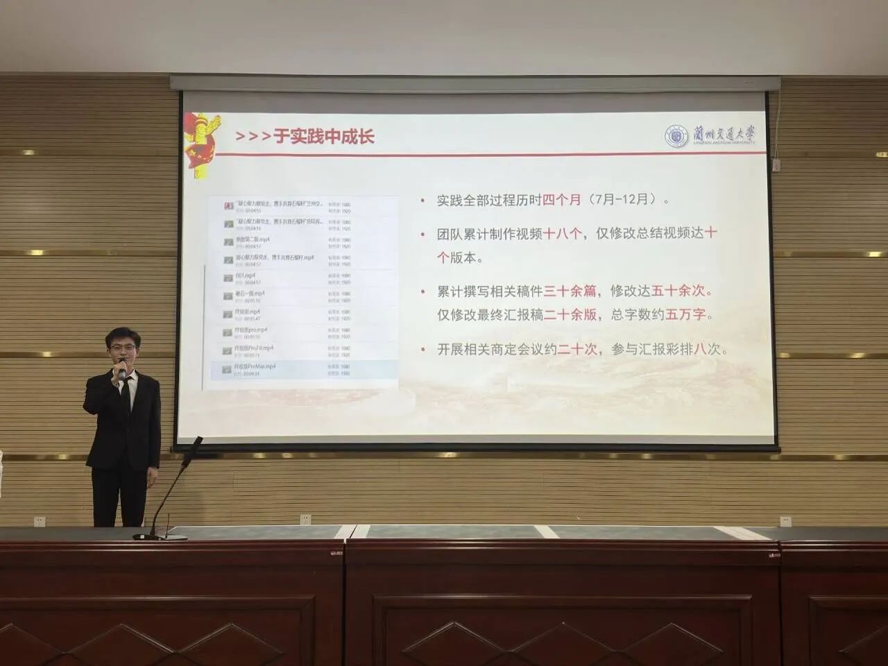 三支实践团队负责人以传承延安精神、弘扬民族团结精神、感悟祖国发展变化为宣讲主线,以PPT、图片、视频相结合的方式依次展示了他们丰富多彩的实践过程,叙述他们行路于广袤大地,思悟于实践之途的点点滴滴。他们以务实的作风、扎实的实践过程、优异的实践成果感召学院更多的青年学子汲取奋进力量,以实践增长才干,以行动书写青春,在学思践悟中筑牢青年思想根基,在扎实服务中与群众更贴近,用青春践行初心使命,以青春之名在祖国大地绽放梦想。