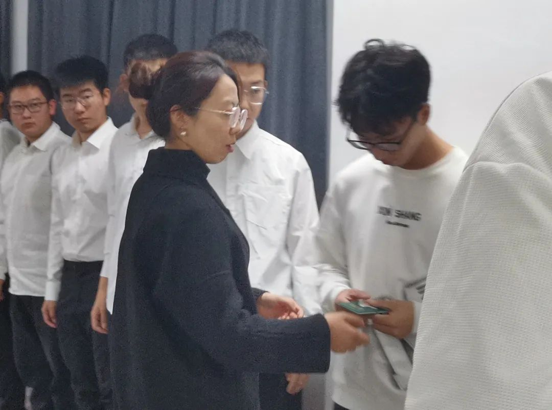 主持人宣读了2023-2024学年秋季学期新发展团员名单。学院团委书记胡瑶老师和团委组织委员张乐飞为新团员颁发团徽、团员证。鲜艳的团徽在新团员的胸口熠熠生辉,提醒他们时刻牢记团员身份,在一点一滴中履行团员义务,发挥共青团员的先锋模范作用。