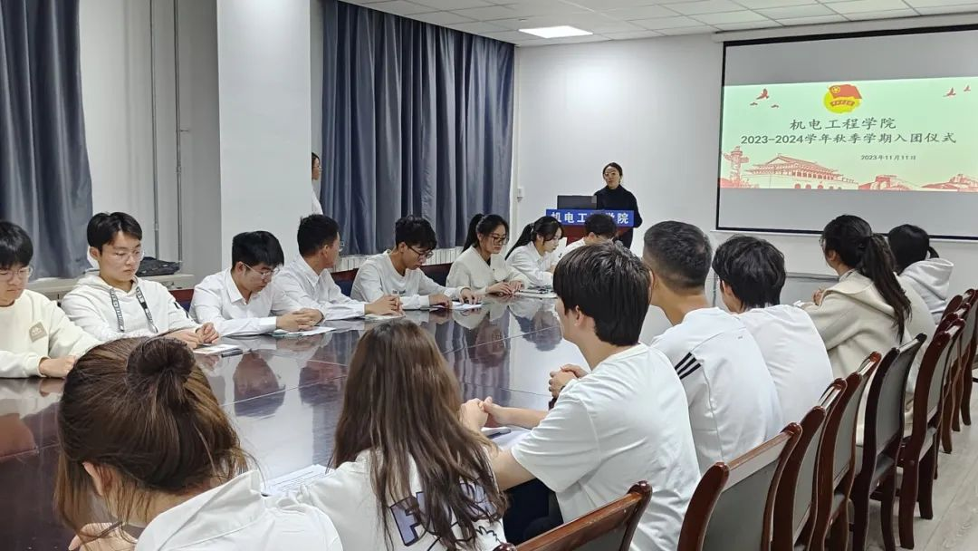 为深入贯彻落实习近平总书记关于加强新时代团员队伍先进性建设的重要指示,深入推进全面从严治团,优化团员队伍规模结构,激励团员青年坚定理想信念,勇担时代使命,2023年11月11日,机电工程学院团委在笃行楼B座609室举行了2023-2024学年秋季学期入团仪式。学院团委书记胡瑶,团委组织部学生干部、团支书代表、团员代表以及2023-2024学年秋季学期新发展团员共计40余人参加了入团仪式。