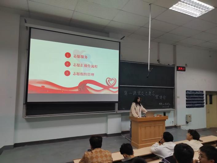 协会志愿者首先对志愿服务进行了简单的介绍,志愿服务是大学生接触社会,进行社会实践的重要方式,分为“学校组织的公益活动”、“学院组织的参观学习活动”、“志愿者协会组织的志愿服务活动”和“班级自发组织且经协会审核通过的志愿服务活动”四部分。其次,志愿者对志愿汇软件进行了介绍,志愿汇是“志愿中国”信息系统的移动应用端,是国内权威的志愿公益认证平台。随后,志愿者详细介绍了志愿汇的报名注册、志愿服务签到、组织报名、活动报名等相关事项,以及志愿汇的操作细则及注意事项,同时,说明了志愿汇在第二课堂学分认定、评奖评优等方面的重要性,并鼓励同学们积极参加各项服务活动,提高综合素养,传承和弘扬奉献、友爱、互助、进步的志愿服务精神。最后,志愿者齐雪梅结合自身志愿服务工作经历分享了志愿者与志愿活动的本质及意义,希望同学们在社会实践、志愿服务中服务奉献社会,锤炼精神品质,实现自我认同。