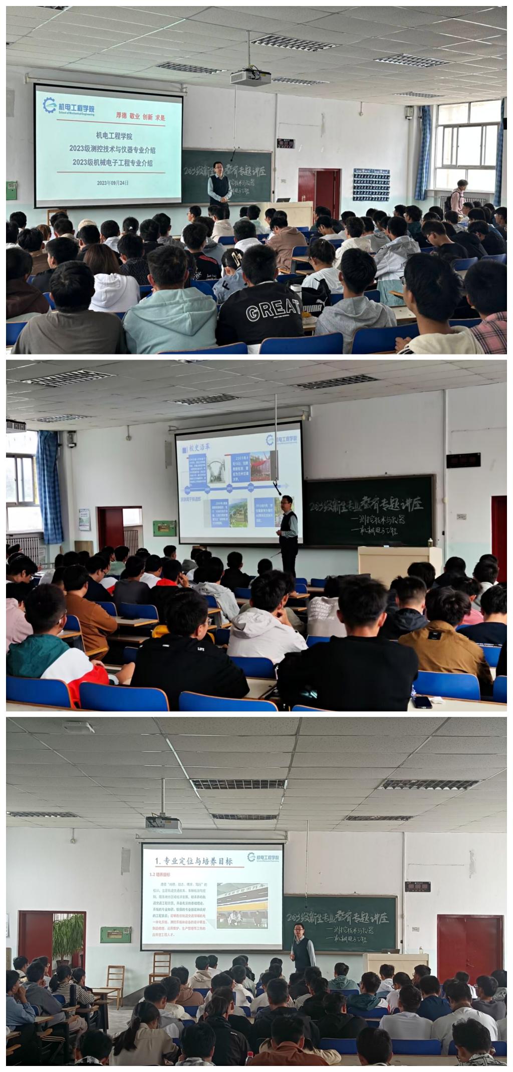 系主任高博围绕学校校史沿革、建校初期知名学者代表、校园基本情况、师资力量、人才培养、招生就业情况、知名校友、培养平台等做了简单介绍;就学院基本情况、机构设置、学科历史沿革、专业建设、课程建设、教材建设、师资队伍、教学成果、学生工作、实训平台、科学研究平台及成果、学院发展目标等做了详细介绍;从测控技术与仪器和机械电子工程专业定位与培养目标、学科发展历程、教学改革与成果、科学研究和平台、课程体系与教学内容、学生培养成果、就业与社会评价等方面分别进行了重点介绍。教育新生们要爱校荣校,常怀感恩之心,永葆奋斗精神,矢志追求更有高度、更有境界、更有品位的人生。并对新生们提出以下五点希望:一要加强日常锻炼,保持身心健康;二要遵守校纪校规,服从学校管理;三要锤炼高尚品格,明辨是非曲直;四要练就过硬本领,夯实专业素质;五要勇于创新创造,提升综合能力。引导新生们适应国家的发展需要,向成长为具有社会责任感、创新意识和良好发展能力的复合型优秀人才不懈努力。