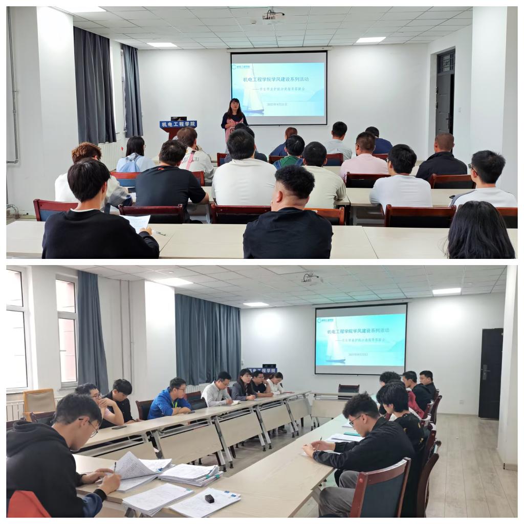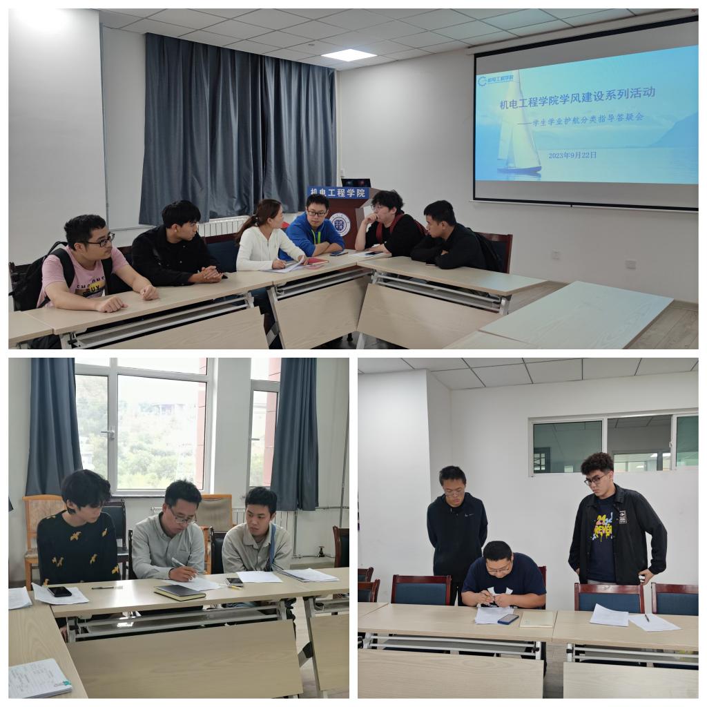 为进一步强化学风建设,加强学业困难学生的关怀与指导,帮助学生顺利完成学业,9月21至22日,机电工程学院在笃行楼B座609会议室开展了两场学风建设系列活动之学生学业护航分类指导答疑会,学院教务办陈丽萍、各年级辅导员和全体插班学生参加了会议,会议由学工办主任张晓丽主持。