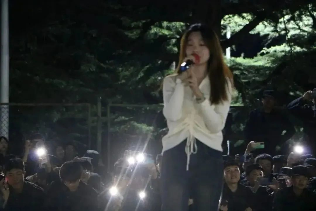 一首又一首脍炙人口的歌曲不断调动起了新生们的青春激情。其中歌曲《天后》中一句“像个人气高居不下的天后”表示出了学长学姐们对新生的无限期盼,希望他们在后续的学习生涯中永远秉持初心,葆有青春自信的样子,绽放出不一样的光芒。