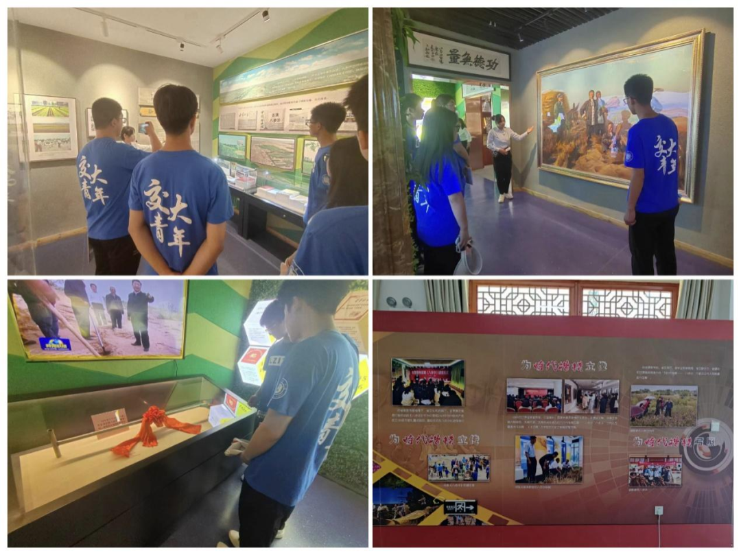7月22日,实践团来到八步沙六老汉治沙纪念馆、八步沙两山实践创新基地开展实践活动。八步沙所在的中国西北地区长期饱受荒漠化及沙尘暴的侵害,在这种艰苦的条件下,八步沙第一代治沙人喊出“困难面前不低头,敢把沙漠变绿洲”的口号,齐心协力、万众一心开展了一场轰轰烈烈、造福后代的治沙运动。跟随讲解员的脚步,实践团成员参观了以“绿之梦”为主题的纪念馆,感受到了治沙人的艰辛历程和力缚黄龙、同佑绿色的治沙壮举。大家认真学习了开沟、铺草、埋压等一系列治沙流程,体会治沙过程之不易,也深刻领悟到矢志不渝,拼搏奋斗,科学治沙,追求绿色发展的当代愚公精神内涵。“生态兴则文明兴,生态衰则文明衰”,实践团成员将积极响应国家生态保护政策,弘扬传承“接续奋斗、不畏艰难、实干苦干、担当作为”的“八步沙”精神,以实际行动来践行“两山理论”,用所学专长为推进生态文明建设汇聚奋斗者的磅礴力量。