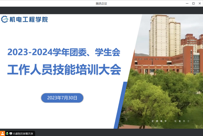 为进一步加强团委、学生会组织建设和队伍建设,切实提高团委、学生会工作成员的工作能力和工作效率,提升团学组织工作人员的服务意识,7月30日,机电工程学院学生会于线上举办了2023-2024学年团委、学生会工作人员技能培训大会,会议邀请了学院2022-2023学年团委副书记王杰学长及新媒体中心负责人胡文博学长担任主讲,学院团委、学生会共计40余名工作人员参加了会议。