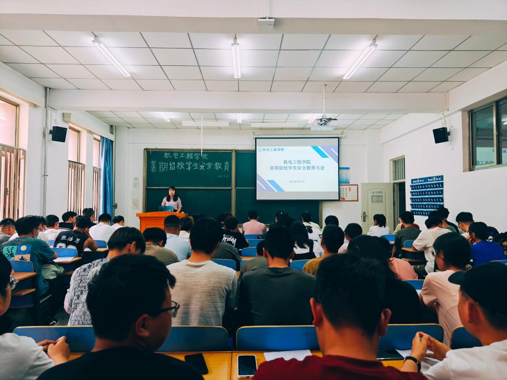 学生工作办公室主任张晓丽宣读了《机电工程学院暑期留校学生安全责任书》,要求所有留校学生必须严格遵守安全责任书中的规定,如有违反,严肃处理,产生的一切后果自负,并追究相关的责任。留校学生现场签订了暑期留校学生安全责任书,提高其安全责任主体意识,绷紧安全之弦。
