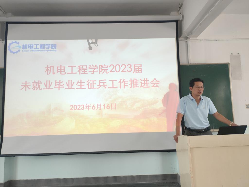为进一步做好2023届毕业生就业征兵工作,全力推动毕业生高质量就业,6月16日下午3点,机电工程学院在第七教学楼1401教室召开了2023届未就业毕业生征兵工作推进会。学院党委副书记、副院长荀新文,学院征兵工作专项负责人寇宗丽,毕业年级辅导员,以及2023届未就业学生参加了本次会议。