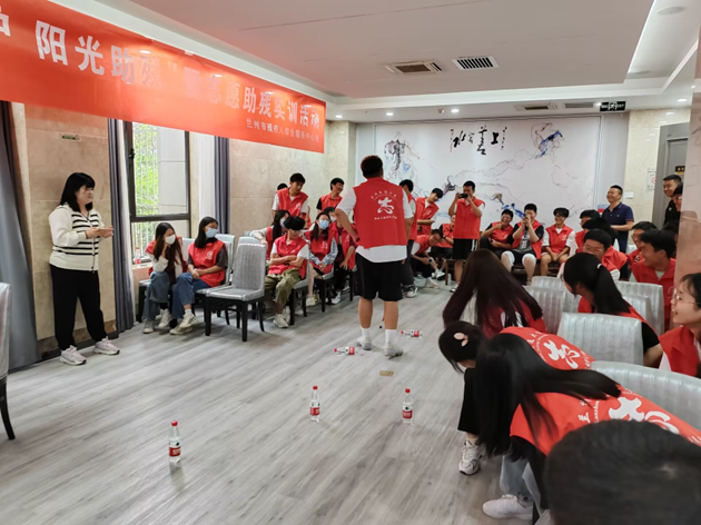 培训中,负责人向志愿者们介绍了体验残疾人活动内容分为传话、我来比划你来猜、体验肢体残缺—单手穿衣服、体验盲人生活、分享活动感想和感受五个环节,并提醒志愿者们在活动过程中的注意事项。活动模拟了聋哑人真实场景中的不便,志愿者们用身体每一个细胞感受着残障人士的日常,切身体会了残障人士生活中存在的困难和不易。志愿者在每一次小心的摸索,每一次手指的划动中也收获了一份对残疾人的敬畏之心。