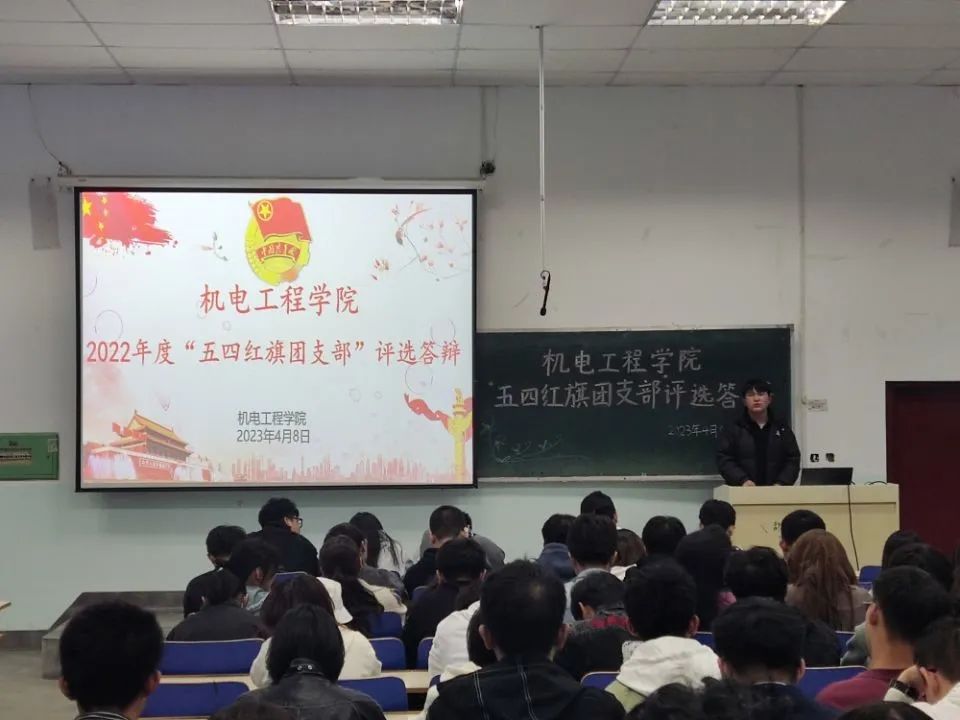 为充分发挥先进典型示范带动作用,营造团支部、团干部之间比学赶超、争先进位的氛围,2022年4月8日14:00,机电工程学院团委举办了2022年度“五四红旗团支部”答辩评选会。学院团学干部,2021级和2022级各团支部团支书、组织委员和宣传委员共计80余人参加了评选会。