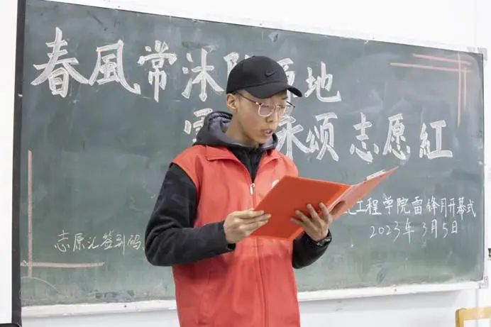 今年是毛泽东等老一辈革命家为雷锋同志题词60周年,也是中国青年志愿者行动开展30周年。为深入学习贯彻落实党的二十大精神,贯彻落实习近平总书记对深入开展学雷锋活动作出的重要指示,深刻把握雷锋精神的时代内涵,不断发展壮大学雷锋志愿服务队伍,弘扬“奉献、友爱、互助、进步”的志愿者精神,让学雷锋在新时代青少年中蔚然成风,让雷锋精神在新时代绽放更加璀璨的光芒。2023年3月5日,机电工程学开展“春风常沐陇原地,雷锋永颂志愿红”学雷锋青年志愿服务月系列活动开幕式。学院党委副书记、副院长荀新文,团委书记胡瑶,2021级、2022级团支部书记以及志愿者代表共计120余人参加开幕仪式。