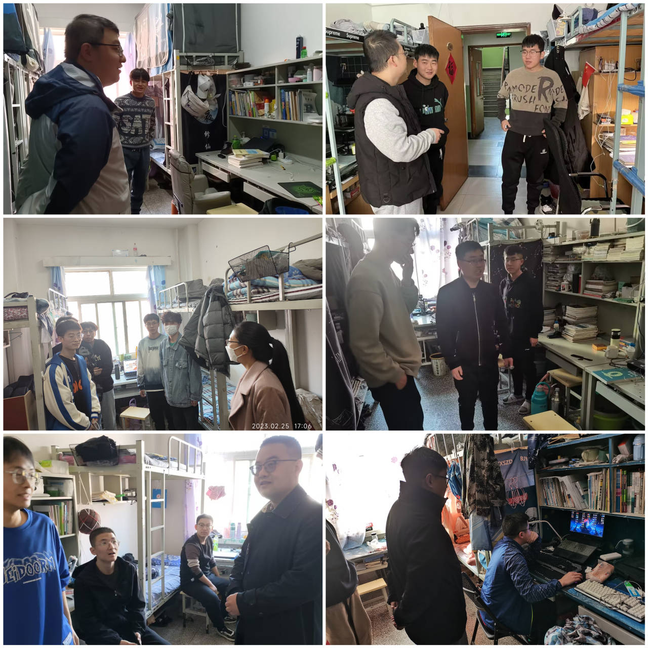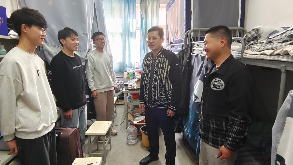走访过程中,学院领导老师与同学们进行了亲切交流。学院党委副书记、副院长荀新文详细了解了同学们的身体状况,叮嘱大家“阳康”之后要适度锻炼,增强身体抵抗力,当好自身健康的第一责任人;提醒同学们加强宿舍通风,保持宿舍卫生整洁,养成良好个人卫生习惯和健康生活方式;要求同学们提高安全意识和防范意识,杜绝使用违规电器,保证用电安全,外出关好门窗,确保自身财产安全;强调要以学业为重,在新学期做好规划,积极向上,砥砺前行。班主任们向大一学生询问了假期生活、学习情况以及返校途中的点点滴滴,叮嘱同学们尽快了解和熟悉校园情况,适应新环境,熟悉新同学,相互包容、和睦相处,相互帮助、共同提高,遇到困难和问题及时与班主任和辅导员老师沟通;与大二大三学生交流了寒假学习和“返家乡”社会实践情况,提醒同学们尽早筹划新学期的学习计划,迅速投入学习实践中,勤于思考,勇于实践,练就本领;向毕业班学生了解了考研成绩和就业情况,表示学院将全力以赴为同学们实现考研复试上岸和就业签约目标提供帮助,希望同学们珍惜机会,积极参加学校学院安排的就业招聘会和考研复试指导会,为考研就业做好积极准备。
