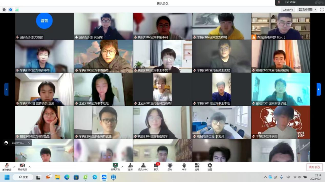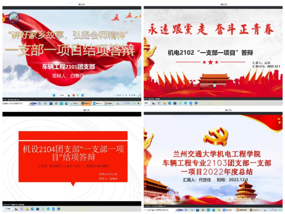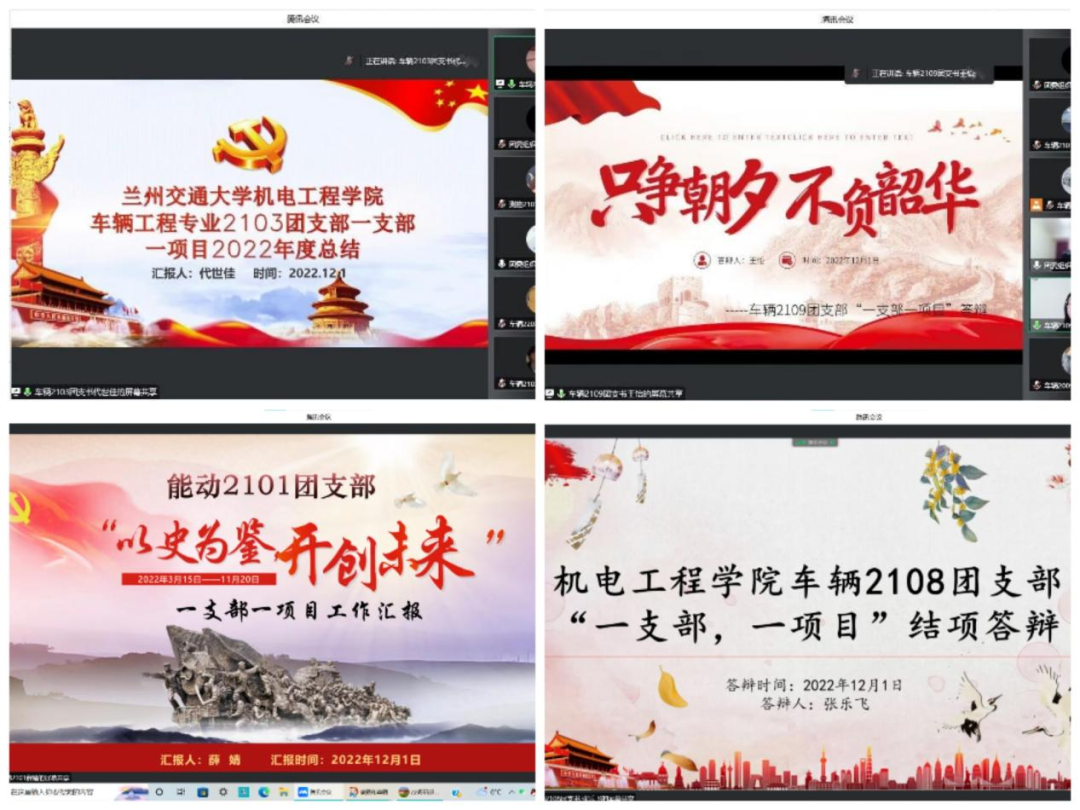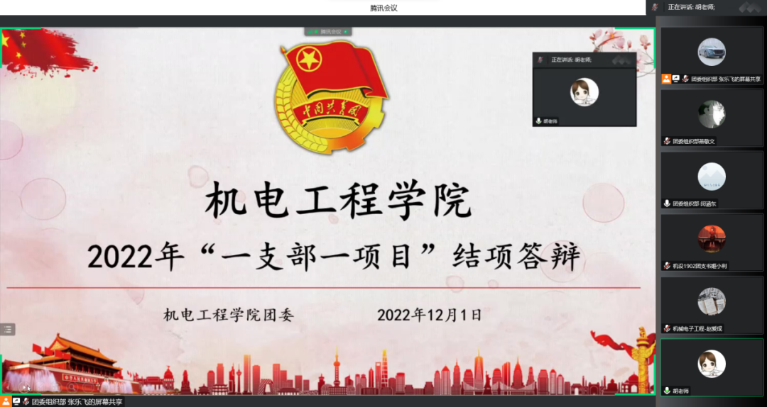 为着力提升团支部组织力、引领力、服务力,积极探索特色项目,推动支部建设创新,不断增强团组织对团员青年的吸引力和凝聚力,12月1日晚19:30,机电工程学院团委线上举办了2022年度团支部“一支部一项目”结项答辩活动。学院团委书记胡瑶、团委组织委员黄富强、机电1901班团支书赵爱成、机设1902团支书姬小利、学院2019级、2020级、2021级、2022级全体团干部共计140余人参加了此次答辩活动。