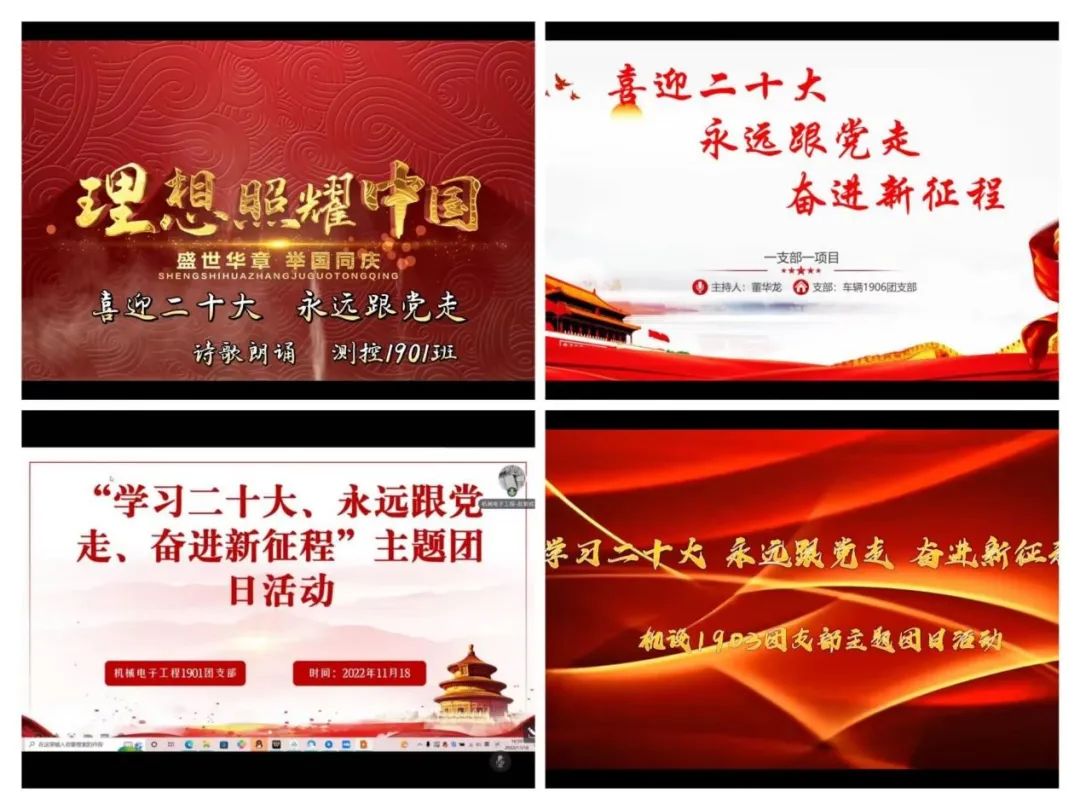 凝心聚力担使命,踔厉奋发谱新篇。机电工程学院各团支部将持续全面学习贯彻落实党的二十大精神,切实肩负起职责使命,充分发挥党的群团工作优势,进一步凝聚青年人心,汇聚青春力量,团结带领各团员青年自觉加强党性修养、加强政治历练、锻造坚韧品格,把对党忠诚作为团员青年最宝贵的品格,以坚定的理想信念砥砺对党的赤诚忠心,成长为能担大任的时代新人,以青春之名在中华民族伟大复兴的新征程上不懈奋斗!