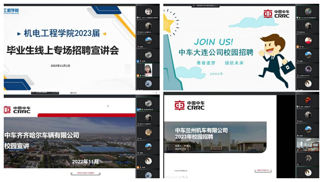 学院把帮扶学生就业作为防疫期间做好学生思想引导,稳定学生情绪的重要抓手,建立了“学院领导一科室主任一系主任一辅导员班主任”就业工作帮扶机制,就业帮扶责任人深入毕业班级讲形势、讲困难、讲机遇、讲流程,积极联系用人单位开展线上专场就业招聘会,累计2600余名毕业生踊跃参加,投递简历。先后有中车齐齐哈尔车辆有限公司、中车大连机车车辆有限公司、中车兰州机车有限公司等11家单位,分别通过公司宣传片向毕业生展示了公司发展历程、公司文化、人才培养模式、取得的成果、发展前景以及社会影响等;重点从公司简介、发展平台及薪酬福利、岗位需求、应聘方式四个方面做了详细宣讲;与毕业生进行了互动交流,对毕业生提出的问题做出了精准的解答。实现了供需双方精准对接,有效帮扶毕业生成功就业。