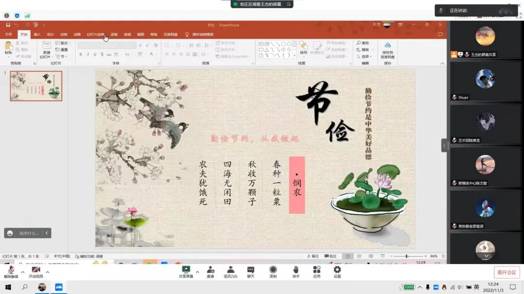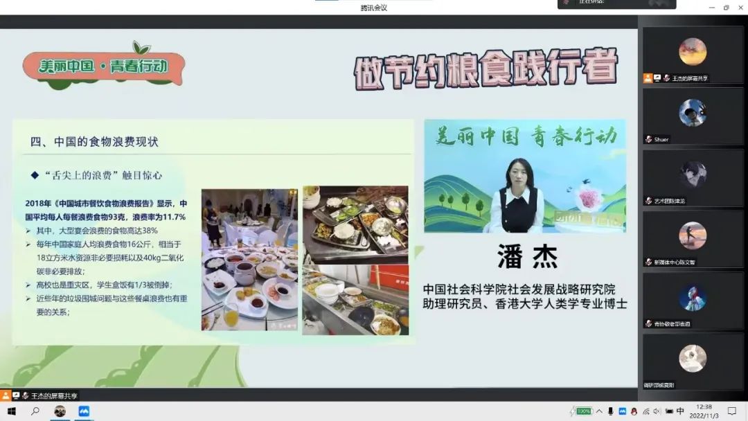 2022年11月3日,共青团中央社会联络部邀请中国社会科学院社会发展战略研究院助理研究员,香港大学人类学专业博士潘杰,为广大青年带来线上公开课。机电工程学院团委积极响应号召,同一时间组织全体学生干部线上集体学习“做节约粮食践行者”主题公开课。