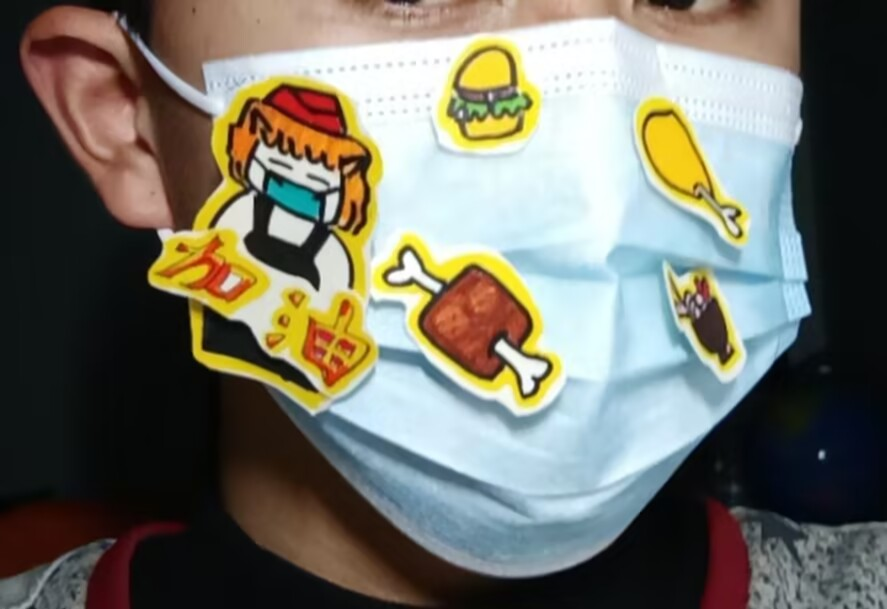 作品用可爱的贴纸,表达了他们对美食的热爱,以及对疫情早日结束的期待。