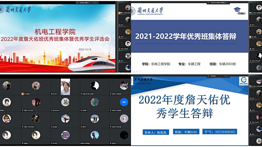 为切实做好2022年度詹天佑班优秀班集体及优秀学生的评选工作,加强学院詹天佑特色班集体建设,弘扬优良班风学风舍风,树立先进模范集体和个人,学院根据《詹天佑班管理办法》专门成立评审小组,于10月19日晚上7:30召开了詹天佑班优秀班集体与优秀学生线上答辩会。学院党委副书记、副院长荀新文,学工办主任张晓丽、团委书记胡瑶、辅导员李秀琴、李亚娜担任评委,辅导员李秀琴主持本次评选会。
