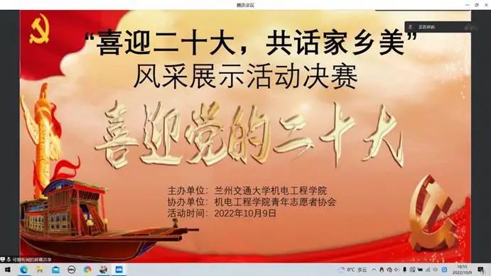 为喜迎二十大,展示青年学生对家乡的思念以及对祖国的热爱之情。2022年10月9日,兰州交通大学机电工程学院青年志愿者协会于线上举办“喜迎二十大,共话家乡美”风采展示活动。