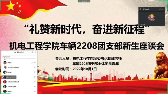 机电工程学院团委依托云端交流会、座谈会等形式深入车辆工程2208团支部、机械设计制造及其自动化1902团支部和测控技术与仪器2101团支部三个支部开展“我进支部去调研”活动,全面了解学生返校后思想动态,解释了疫情防控期间学校国庆放假安排,调研了毕业生就业问题,解读了共青团促进大学生就业行动举措,切实发挥共青团引领凝聚青年、服务联系青年、组织动员青年的政治功能,进一步引导团员青年勇挑重担、奋楫争先,奋力书写“请党放心,强国有我”青春华章,以昂扬斗志和优异的业绩迎接党的二十大胜利召开。
