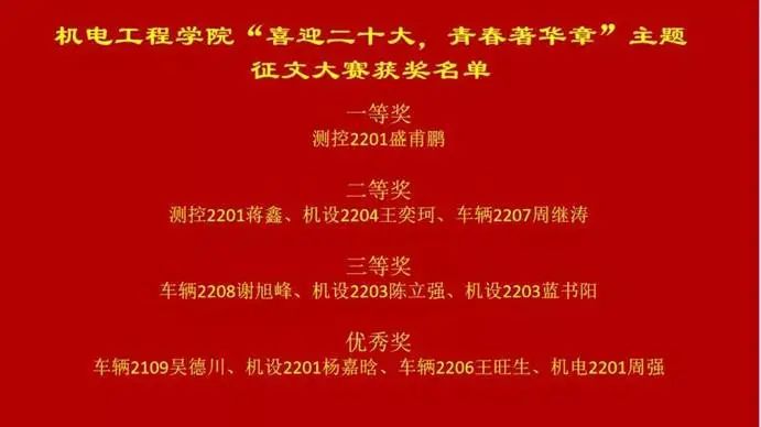 机电工程学院团委“喜迎二十大,青春著华章”主题征文大赛