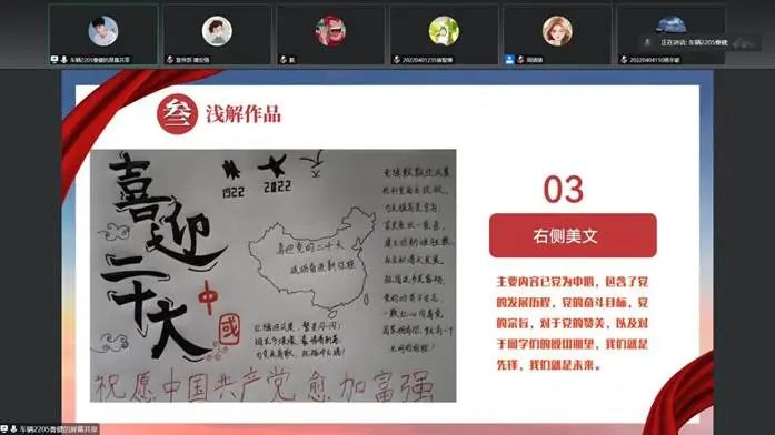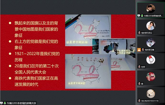 本次活动分为初赛和复赛两个环节,经过筛选,共计9副优秀作品进入复赛答辩。复赛中,各位参赛同学通过PPT讲解贺卡的创作来源和寓意,用自己的方式去表达着对祖国的祝福,用一张张充满中国风的贺卡体现着当代青年学生对共产党的热爱,祝愿我们伟大的祖国繁荣昌盛,祝愿我们伟大的中国共产党永葆青春,祝愿我们伟大的人民幸福安康!最后,评委评选出一等奖一名,二等奖两名,三等奖三名,并将参赛作品的得分进行了公示。