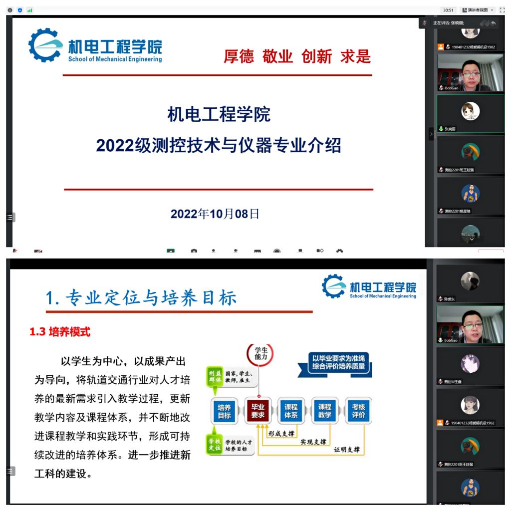 为推动专业教育与思政教育同向同行,引导学生爱学校、爱学院、爱专业,合理规划未来四年的学业生涯,机电工程学院举办了新生专业教育专题讲座,10月8日下午4:30,测控技术与仪器系主任高博面向测控技术与仪器专业新生进行了线上专业思想教育宣讲,测控技术与仪器专业全体新生聆听了讲座。讲座由学生工作办公室主任张晓丽主持。