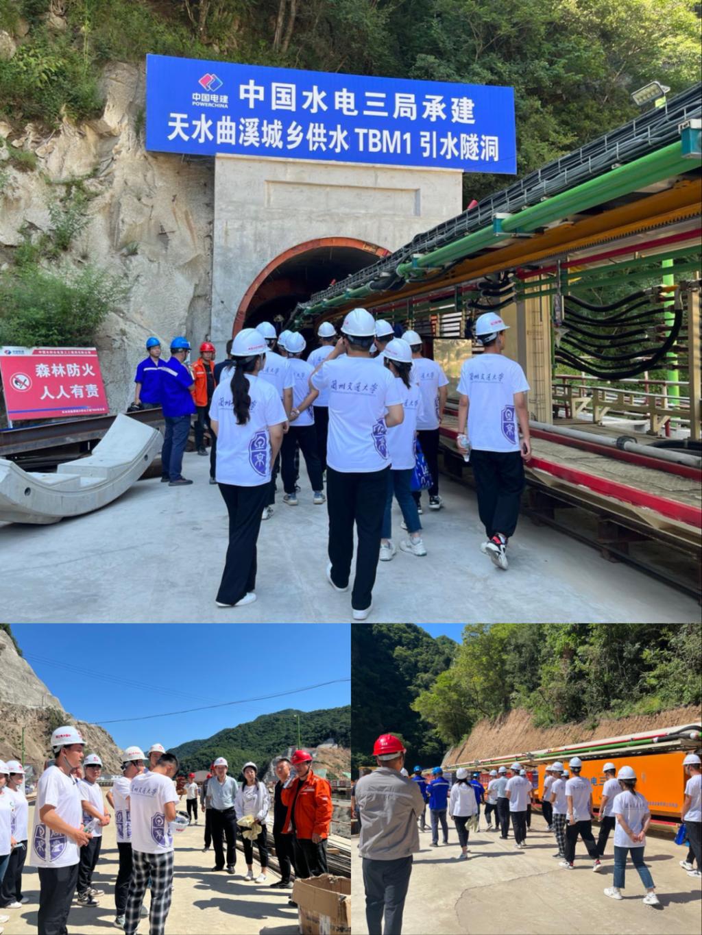 实践团成员在天水市曲溪城乡供水工程有限公司领导的带领下,前往曲溪城乡供水工程TBM项目部参观学习,与项目部现场管理人员开展实践交流。在施工现场,项目副总工程师何海鹏结合项目总体设计及建设内容向学生们做了生动的讲解,同时带领实践团成员参观学习了国产超强脱困型双护盾TBM的构造及施工原理,并针对学生们现场提问作了详细的解答。实践团成员表示,今天的参观实践活动获益匪浅,将平时的理论知识联系到了实际,为专业课的学习更加明确了方向,同时,对他们在实习期及毕业季选择就业岗位、更快适应工作岗位提供了很大帮助。