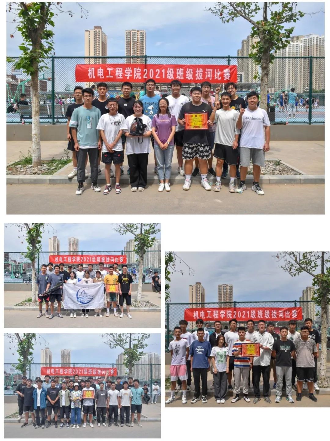 本次拔河比赛由“初赛、复赛和决赛”三个环节组成,每一环节采取三局两胜淘汰制。赛场上,队员们一个个意气风发,斗志昂扬,在裁判的一声哨响下,在现场同学们澎湃的加油声中,一场场力量的角逐便开始了,“一二一二”的呐喊声响彻整个赛场,气势恢弘,催人奋进。赛场下,“敌手间”相拥而笑、互相鼓励。在经过为期五天的精彩的比赛后,机设2102班、车辆2103班、测控2101班、车辆2105班获得了本次拔河比赛的前四名。此次拔河比赛,充分展现了机电学子昂扬向上的精神状态,增强了团队凝聚力、向心力、战斗力,提高了集体荣誉感,更倡导了大家积极投身体育运动、养成健康文明生活方式的行动自觉。